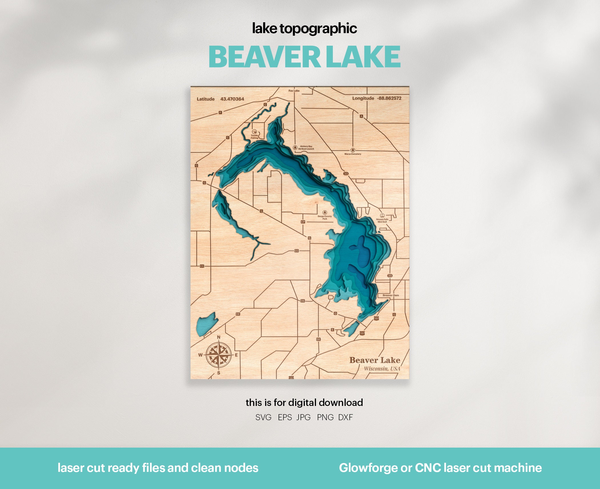 Beaver Lake, AR 3D Wood Map | Laser etched Nautical Decor